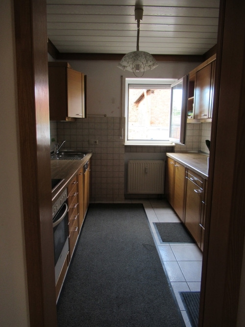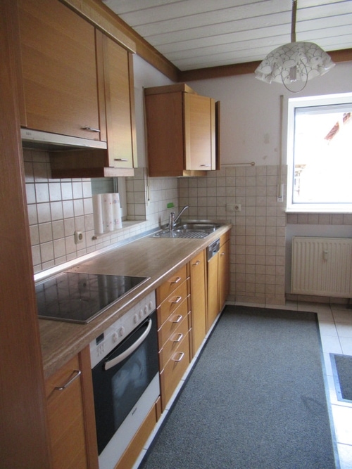 In der Küche ist derzeit eine genau eingepasste Einbauküche (Echtholz) integriert. Diese bietet der derzeitige Mieter gegen eine kleine Abstandzahlung zum Kauf an. Die Übernahme der Küche ist für die Anmietung der Wohnung aber nicht zwingend!