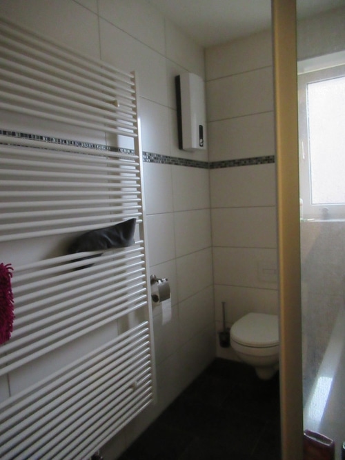 Die Warmwasserversorgung erfolgt über Durchlauferhitzer (bitte bei der Einbauküche beachten!).