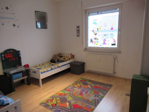 Auf der linken Seite der Diele ist das Zimmer Nr. 2 mit ca. 12,3 m² Wohnfläche, Es ist mit dieser Größe als Kinderzimmer gut geeignet.