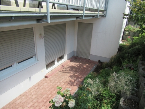 Von hier gehen Sie auf den Freisitz mit Süd/West-Ausrichtung. Überdacht, durch den darüber befindlichen Balkon, sitzen Sie hier selbst bei Regen sicher und trocken.