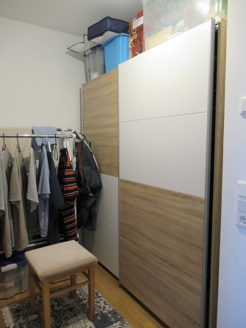 Der Raum wurde mittels einer kurzen Wand geteilt, so dass Sie sich den Traum von einem begehbaren Kleiderschrank erfüllen können.
