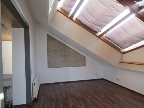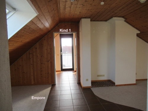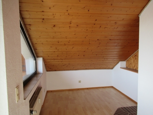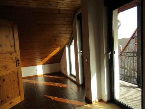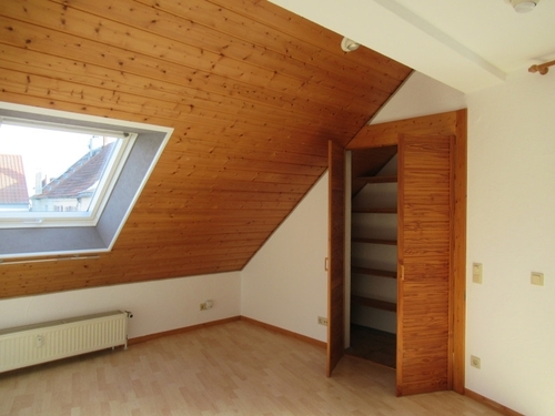Ein weiterer Raum ist das Schlafzimmer. Hier sind praktischer Weise insgesamt 3 Einbauschränke in die Schrägen eingearbeitet. Des Weiteren ist ein Zugang auf den vorerwähnten Süd-Balkon (der auch von der Küche einen Zugang hat) möglich. Da kann man den Abend nochmal an der frischen Luft gut ausklingen lassen.