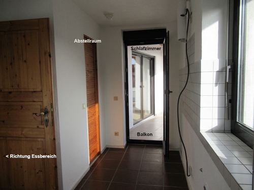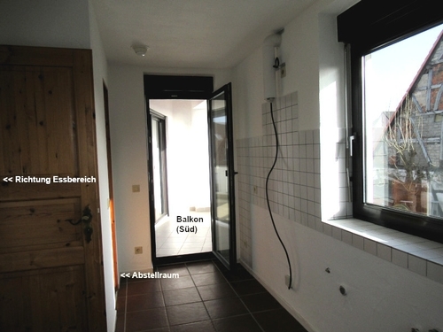 Zur linken Seite gehen Sie dann in die Küche mit einem Abstellraum sowie Zugang auf den Südbalkon. Auf ca. 12 m² kann man sich dort nach Feierabend gut erholen.