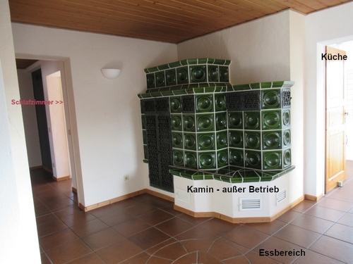 mit Kaminofen (ca. 0,94 m²) - dieser ist allerdings außer Betrieb, kann jedoch mit einem innenliegenden Ofen nachgerüstet werden