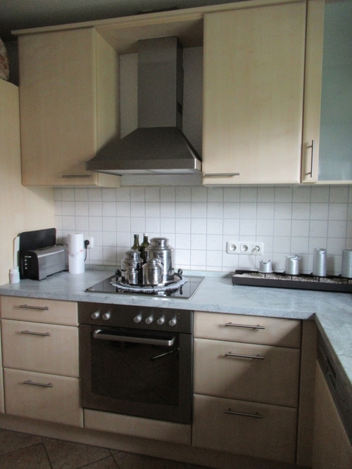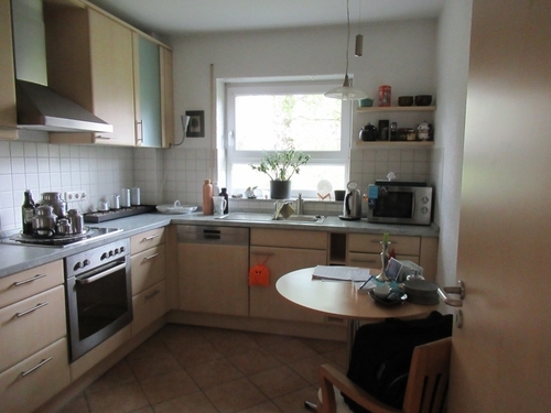 Ihnen wird eine hübsche Einbauküche kostenfrei zur Verfügung gestellt. Ausgestattet mit Kühlschrank, Gefrierschrank, Herd mit Cerankochfeld, Backofen, Spüle, Dunstabzugshaube, Geschirrspülmaschine sowie diversen Hänge- und Unterschränken, ist diese nur noch von Ihnen mit Geschirr usw. einzuräumen.