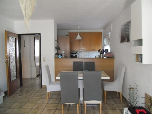 Die Küche ist zum Wohnzimmer bzw. Essbereich im Wohnzimmer offen gehalten.