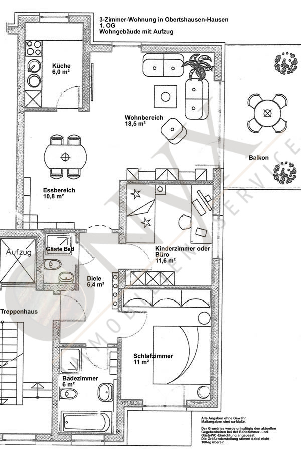 Alle objektbezogenen Angaben und Unterlagen stammen vom Verkäufer. Eine Gewähr und Haftung im Hinblick auf Daten, Größe, Güte, Vollständigkeit und Beschaffenheit sowie inhaltliche Richtigkeit kann daher nicht übernommen werden. Das Angebot ist freibleibend. Zwischenverkauf oder Vermietung, Irrtum oder Auslassungen bleiben vorbehalten.
