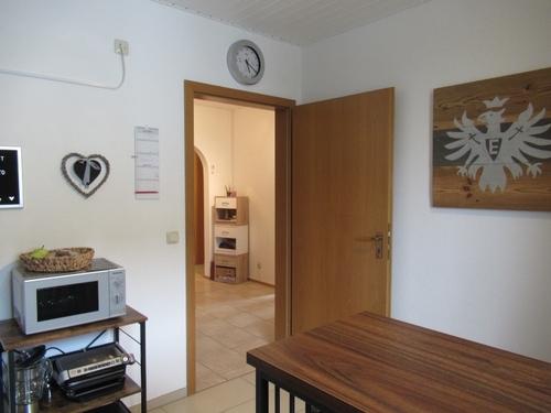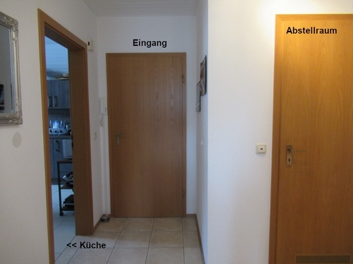 Hier sehen Sie zunächst die Türen zur Küche und zum großen Wohnzimmer.