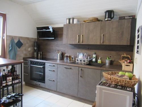 Die Küche ist so geschnitten, dass Sie sich eine hübsche Wohnküche zaubern können.